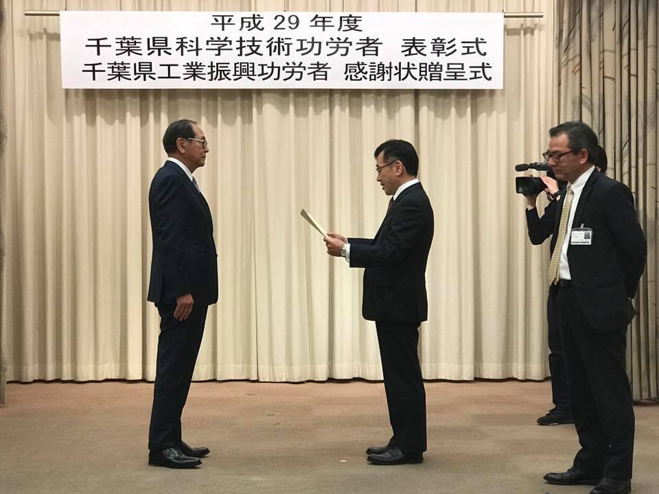 代表取締役会長の市田信七が平成29年度千葉県科学技術功労者として選定される