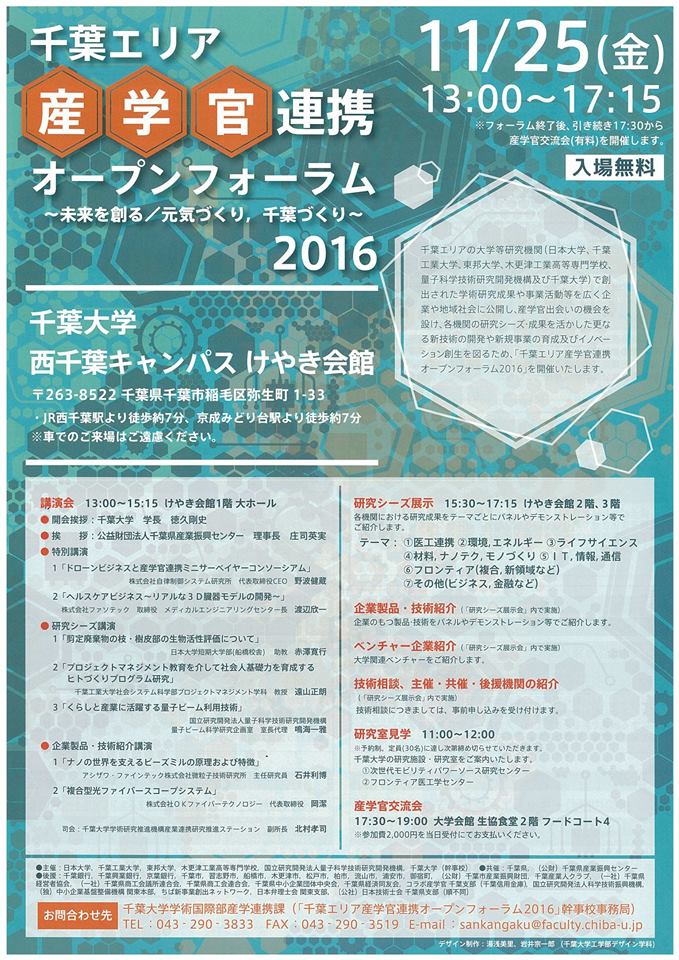 アイ・メデックスは千葉にて開催されます「千葉エリア産学官連携オープンフォーラム2016(11月25日)」に参加します。