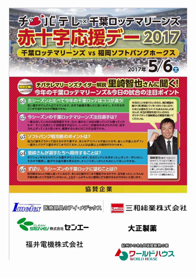 5月6日の千葉ロッテマリーンズvs福岡ソフトバンクホークス戦は赤十字応援デーです。
