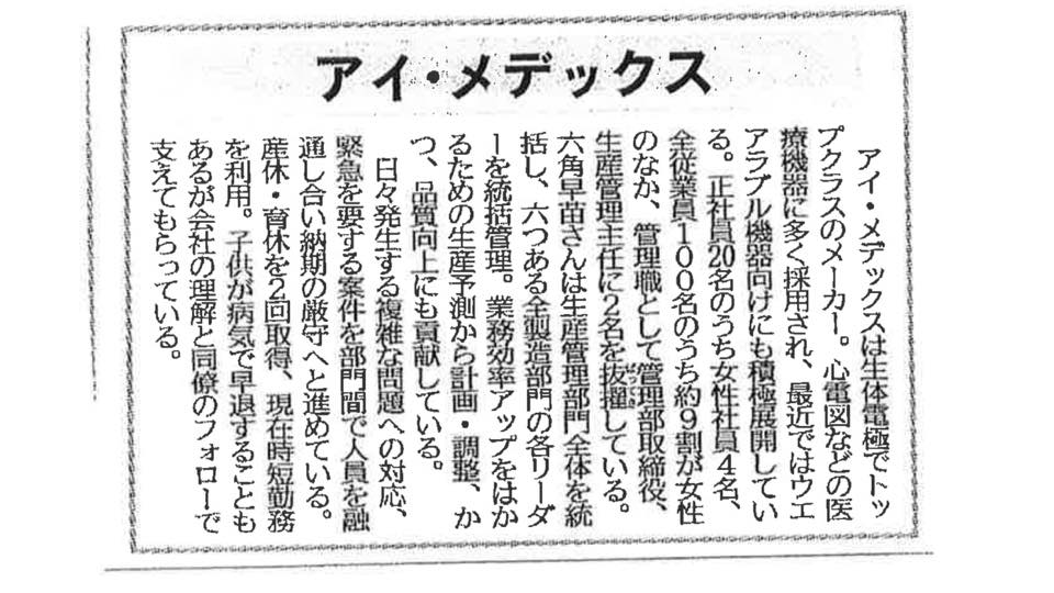 日刊工業新聞に女性が活躍する企業として紹介記事